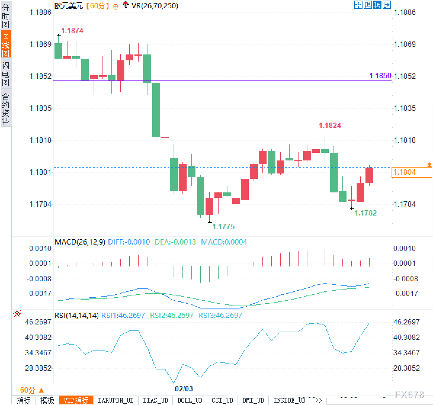 从技术图形来看,欧元兑美元在60分钟级别上呈现出典型的震荡结构。前期自1.1874高点回落,最低探至1.1775后反弹,再度受阻于1.1824附近,显示出上方抛压依然沉重。当前报价1.18正处于前一轮反弹的中轴位置,表明多空双方仍未分出胜负。上方关键阻力位于1.1850区域,若无法有效突破,此次反弹很可能只是下跌过程中的技术修正;而下方支撑则集中在1.1782一带,一旦失守,或将再次测试1.1775低点的承接力度。